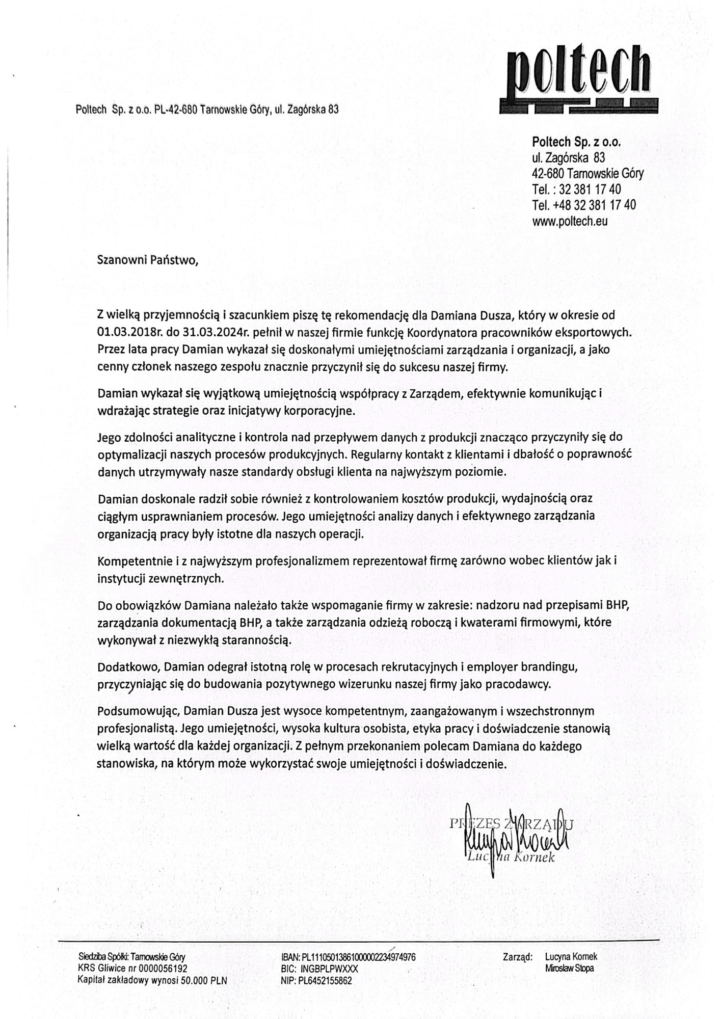 • Zgodność z przepisami i zarządzanie ryzykiem: Zapewnienie zgodności z przepisami prawa pracy i bezpieczeństwa oraz zdrowia w pracy (BHP), co obejmowało wdrożenie i egzekwowanie polityk i procedur mających na celu minimalizowanie ryzyka operacyjnego. Nadzór nad dokumentacją związaną z przestrzeganiem regulacji oraz odpowiedzialność za szkolenia i monitorowanie zgodności w ramach zarządzanych projektów. Współpraca z działem prawnym i HR w celu zapewnienia ciągłej aktualizacji i dostosowania do zmieniających się warunków prawnych.