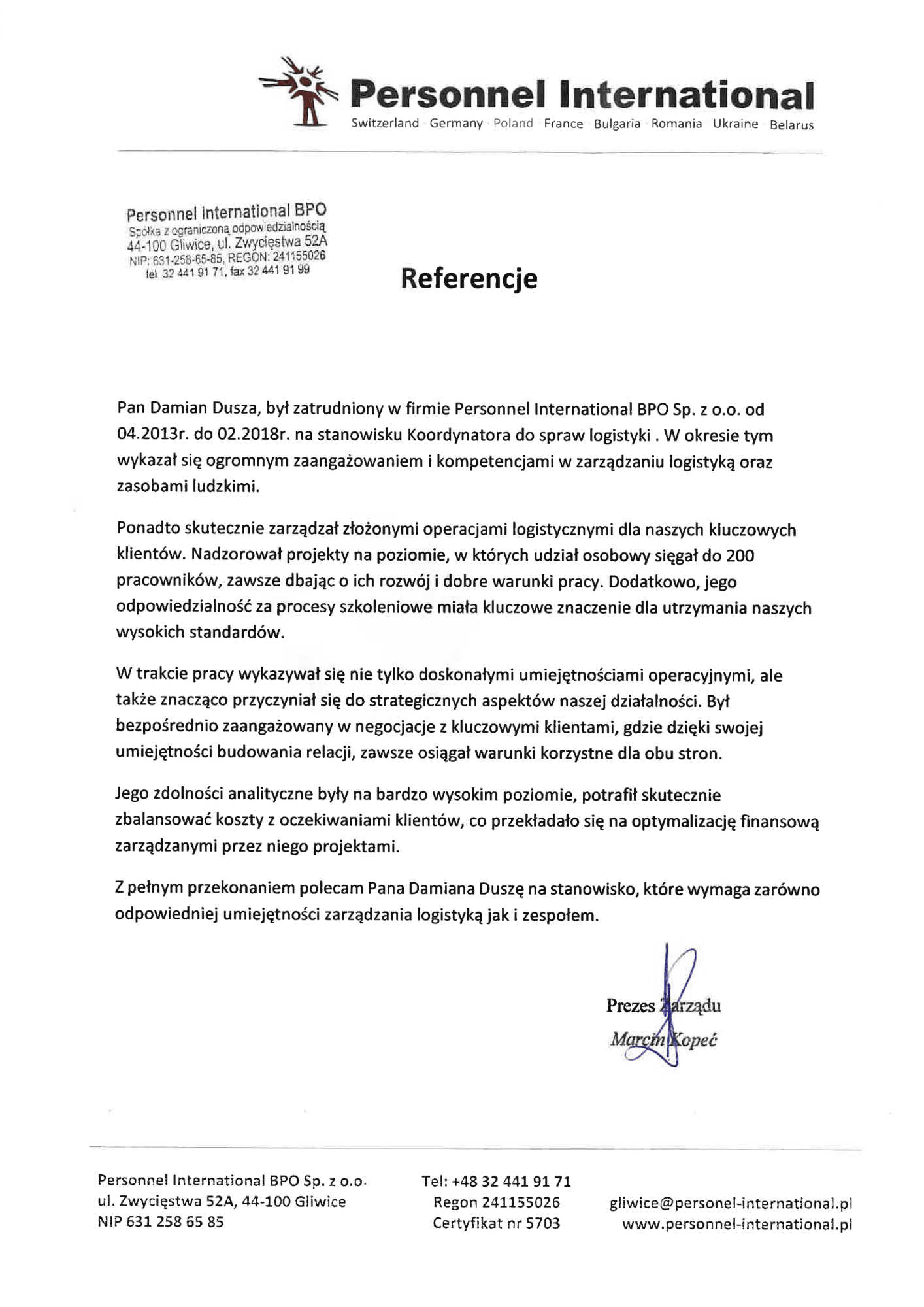To doświadczenie pozwoliło mi na rozwinięcie kluczowych kompetencji, takich jak organizacja pracy, dokładność oraz efektywność w realizacji zadań, co przekładało się na płynne funkcjonowanie całego łańcucha dostaw. Dzięki temu, po zakończeniu studiów, doskonale odnalazłem się w roli koordynatora ds. logistyki / Zastępcy dyrektora ds. logistyki w firmie Personnel International. Znajomość pracy magazynowej z perspektywy pracownika pozwoliła mi na skuteczne zarządzanie zespołami i procesami logistycznymi, co przyczyniło się do osiągania wysokiej efektywności i zadowolenia klientów.